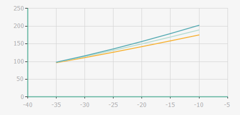 | 蒸發(fā)溫度 | 制冷量+/-5% | 能耗+/-5% | 現(xiàn)在能效+/-5% | 氣體流速+/-5% | 能效+/-7% | ||||