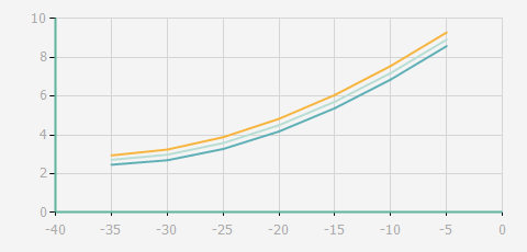| 蒸發(fā)溫度 | 制冷量+/-5% | 能耗+/-5% | 現(xiàn)在能效+/-5% | 氣體流速+/-5% | 能效+/-7% | ||||