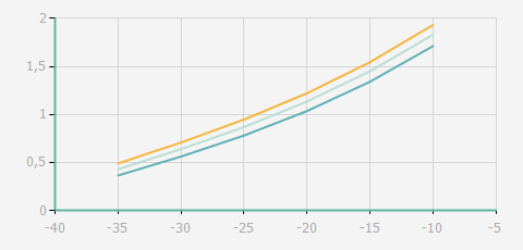 | 蒸發(fā)溫度 | 制冷量+/-5% | 能耗+/-5% | 現(xiàn)在能效+/-5% | 氣體流速+/-5% | 能效+/-7% | ||||