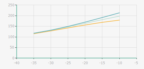 | 蒸發(fā)溫度 | 制冷量+/-5% | 能耗+/-5% | 現(xiàn)在能效+/-5% | 氣體流速+/-5% | 能效+/-7% | ||||