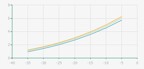 | 蒸發(fā)溫度 | 制冷量+/-5% | 能耗+/-5% | 現(xiàn)在能效+/-5% | 氣體流速+/-5% | 能效+/-7% | ||||