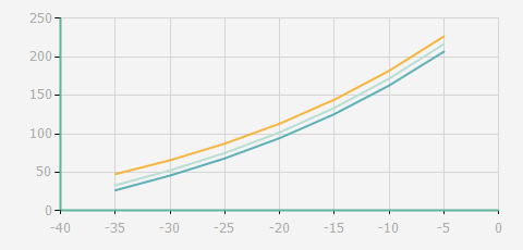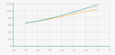 | 蒸發(fā)溫度 | 制冷量+/-5% | 能耗+/-5% | 現(xiàn)在能效+/-5% | 氣體流速+/-5% | 能效+/-7% | ||||