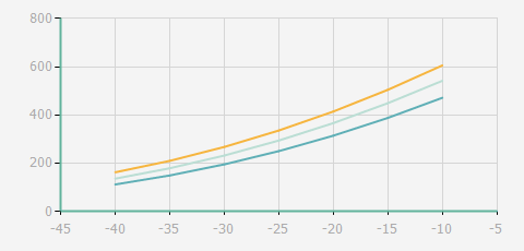 | 蒸發(fā)溫度 | 制冷量+/-5% | 能耗+/-5% | 現(xiàn)在能效+/-5% | 氣體流速+/-5% | 能效+/-7% | ||||