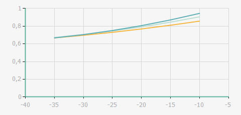 | 蒸發(fā)溫度 | 制冷量+/-5% | 能耗+/-5% | 現(xiàn)在能效+/-5% | 氣體流速+/-5% | 能效+/-7% | ||||