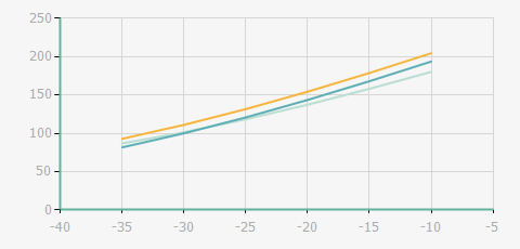 | 蒸發(fā)溫度 | 制冷量+/-5% | 能耗+/-5% | 現(xiàn)在能效+/-5% | 氣體流速+/-5% | 能效+/-7% | ||||