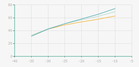 | 蒸發(fā)溫度 | 制冷量+/-5% | 能耗+/-5% | 現(xiàn)在能效+/-5% | 氣體流速+/-5% | 能效+/-7% | ||||