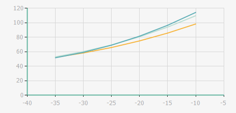 | 蒸發(fā)溫度 | 制冷量+/-5% | 能耗+/-5% | 現(xiàn)在能效+/-5% | 氣體流速+/-5% | 能效+/-7% | ||||