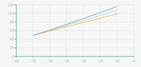 | 蒸發(fā)溫度 | 制冷量+/-5% | 能耗+/-5% | 現(xiàn)在能效+/-5% | 氣體流速+/-5% | 能效+/-7% | ||||