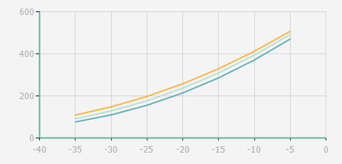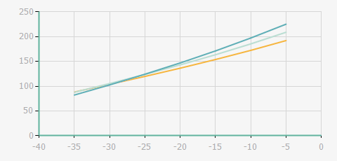 | 蒸發(fā)溫度 | 制冷量+/-5% | 能耗+/-5% | 現(xiàn)在能效+/-5% | 氣體流速+/-5% | 能效+/-7% | ||||