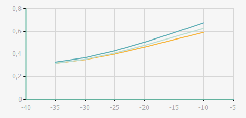 | 蒸發(fā)溫度 | 制冷量+/-5% | 能耗+/-5% | 現(xiàn)在能效+/-5% | 氣體流速+/-5% | 能效+/-7% | ||||